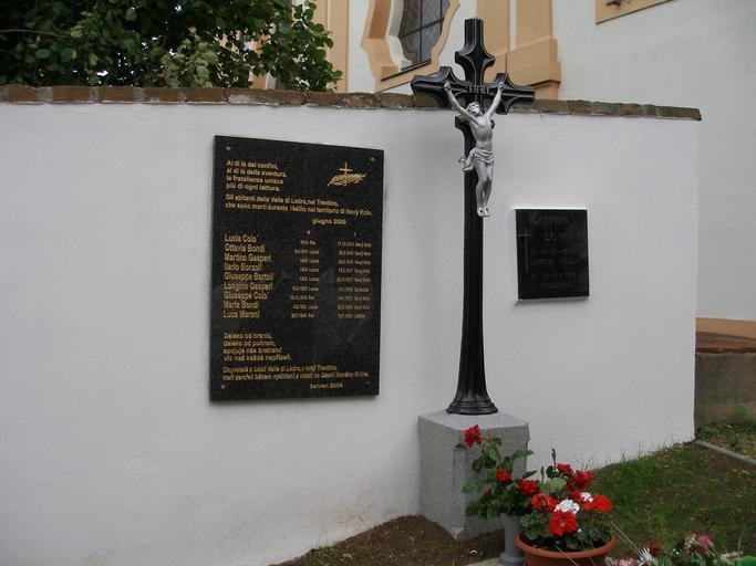 | Keywords: StaryKnin-2009-06-21-PametniDeskaExulantuZValleDiLedro.JPG en Starý Knín - the memory table of refugees from Valle di Ledro on the cemetary cs Starý Knín - pamětní deska běženců z údolí Valle di Ledro na hřbitově ru Ста ы Книн - мемо иальная доска беженцам из долины Валле ди Лед о на кладбище it Starý knín - lapide degli abitanti della Valle di Ledro che sono morti durante l'esilio 1915 - 1919 nell territorio di Nový Knín own Miloš Hlávka 2009-06-21 Reminders of exile from Valle di Ledro to Bohemia in 1915-1919 years Cemetery in Starý Knín Crosses in Central Bohemian Region Plaques in Příbram District World War I memorials in Příbram District |