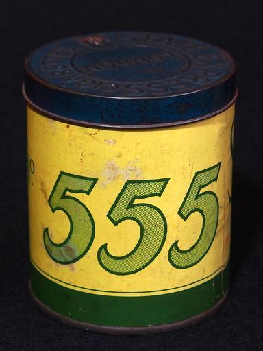 Keywords: State Express cigarettes No 555 tin, photo11.JPG Very old product that is not produced and not sold any more Note that some tins may look the same but when looked for carefully there are some slight differences Photographed at a collector of Droste memorabilia and old tin cans For more info see http //www tincollectors nl/ tincollectors nl or email info tincollectors nl own 2014-02-08 15 04 52 Alf van Beem CC-Zero Trademarked Cigarette tins State Express 555 cigarettes |
