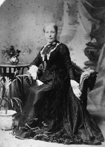 Keywords: StateLibQld 1 101268.jpg en Sarah Ann Gregory Sarah Gregory nee Robinson wife of Edmond Gregory Mrs Gregory is photographed wearing an elegant silk 'presentation dress' and holding a fan The bodice of the dress features covered buttons along the whole length of the tight sleeves and lace on the cuffs and collars handle 10462/deriv/68295 Item is held by John Oxley Library State Library of Queensland Contributor s Paris Panel Photograph PD-Australia StateLibQld-License Lace in portrait photographs Women's clothing of Australia Black and white photographs Dresses in Australia Black and white photographic portraits of women |