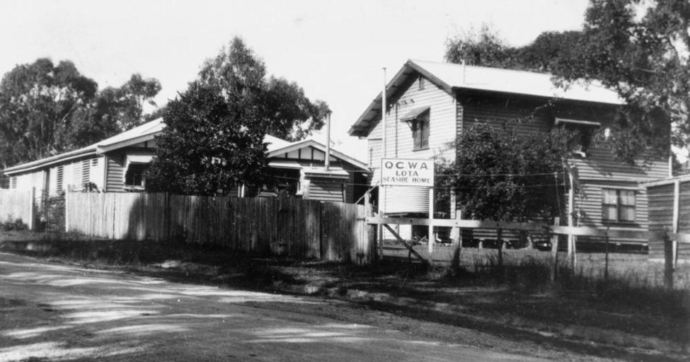 | Keywords: StateLibQld 1 102244 Queensland Country Women's Association home for the aged, Lota, Brisbane, ca. 1930.jpg en Queensland Country Women's Association home for the aged Lota Brisbane ca 1930 Q C W A seaside nursing home for the aged at Lota Fenced area with two storey accommodation bungalows circa 1930 handle 10462/deriv/68277 Item is held by John Oxley Library State Library of Queensland PD-Australia StateLibQld-License Buildings in Brisbane Nursing homes in Australia Fences in Queensland Corrugated iron Sheds in Australia Lota Queensland Black and white photographs |