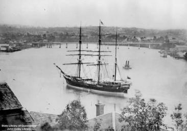 | Keywords: StateLibQld 1 105604 Indus (ship) anchored in the South Reach of the Brisbane River, Brisbane, 1876.jpg en Indus ship anchored in the South Reach of the Brisbane River Brisbane 1876 View of the Indus at anchor in the Brisbane River The first permanent Victoria Bridge which had a revolving mechanism to allow shipping to pass through can be seen in the background The view is looking from River Terrace South Brisbane with the city on the right of the bridge The Indus was built in 1847 and weighed 1 319 tons The ship was built as a steamer but was later converted into a sailing vessel Between 1870 and 1876 it made six voyages to Moreton Bay with immigrants on board 1876 handle 10462/deriv/92464 Item is held by John Oxley Library State Library of Queensland PD-Australia StateLibQld-License Barques Sailing ships of Australia First Victoria Bridge Brisbane Brisbane River Indus ship 1847 Ships in Brisbane 1876 in Brisbane Black and white photographs |