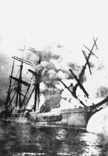 Keywords: StateLibQld 1 105728 Reliance (ship).jpg supplied with photograph <br /><br />Reliance was a four-masted iron ship built in 1884 by W H Potter Sons Liverpool Dimensions 95 57×12 87×7 53 314'0 ×42'3 ×24'9 and tonnage 2631 GRT and 2458 NRT Rigged with royal and sky sails over double top and topgallant sails<small>http //www bruzelius info/Nautica/Ships/Fourmast_ships/Reliance 281884 29 html</small> 1907 handle 10462/deriv/92798 Item is held by John Oxley Library State Library of Queensland PD-Australia StateLibQld-License Reliance ship 1884 History of Iquique 1907 in Chile Burning ships Black and white photographs |