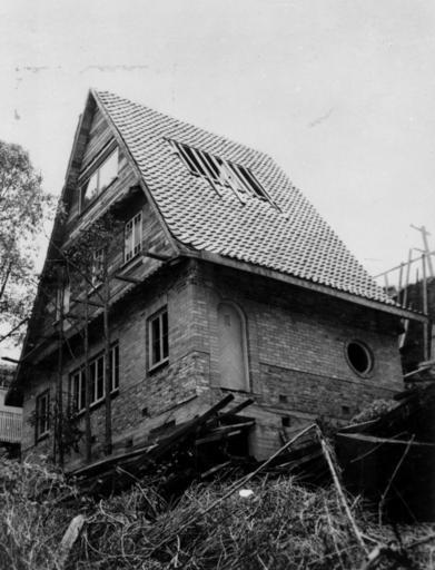 | Keywords: StateLibQld 1 117492 G. Meek's house in 24 McGregor Terrace, Bardon.jpg en G Meek's house in 24 McGregor Terrace Bardon The image shows architect G Meek's house in Bardon still under construction The house designed to suit the land stands at 43 feet above ground level at the back and only 15 feet above footpath level at the front A concrete catwalk leads from the street into the lounge and vestibule situated in the peak of the high pitched roof On the floor below are the kitchen dining room bathroom and maid's room while the next floor down contains three bedrooms and a sleep-out The pitch of the roof was so steep that the tiles had to be fixed by hand from the inside and pinned with special clips The estimated final cost at the time the photograph was taken was £3 500 The suburb of Bardon was named after Bardon House built by Joshua Jeays an architect and a partner of Andrew Petrie in the construction of the Petrie Terrace Goal Bardon House was named after Jeays' birthplace Bardon Hill in Leicestershire England Joshua Jeays was an alderman of the first Municipality of Brisbane from 1859 to 1864 when he became the Mayor The area that is now Bardon was first surveyed on 12 November 1862 This was followed by the sale of the land with only three buyers showing interest Joshua Jeays Francis Lyon and Edward Wyndham Tufnell Tufnell became the first Anglican Bishop of Brisbane 1951 handle 10462/deriv/108139 Item is held by John Oxley Library State Library of Queensland PD-Australia StateLibQld-License Houses in Bardon Queensland 1951 in Brisbane Black and white photographs |