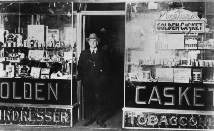 Keywords: StateLibQld 1 119132 Golden Casket agent, Rankin Tobacconists on Ruthven Street, Toowoomba, ca. 1926.jpg en Golden Casket agent Rankin Tobacconists on Ruthven Street Toowoomba ca 1926 circa 1926 handle 10462/deriv/108223 Item is held by John Oxley Library State Library of Queensland PD-Australia StateLibQld-License Barber shops Men's clothing of Australia Commerce buildings in Toowoomba 1926 in Queensland Black and white photographs |