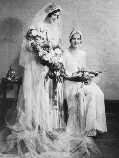 | Keywords: StateLibQld 1 127447 Cooee Blume on her wedding day, with her bridesmaid Filmer Blume.jpg en Cooee Blume on her wedding day with her bridesmaid Filmer Blume daughters of E G Blume Married P G Fegan 1931 handle 10462/deriv/82374 Item is held by John Oxley Library State Library of Queensland PD-Australia StateLibQld-License Portraits of Queensland Brides of Australia Wedding dresses in Australia Veils in Australia Bridesmaids of Australia Flower bouquets in Australia Jewellery of Australia 1931 in Australia Black and white photographs 1931 weddings 1930s wedding dresses |