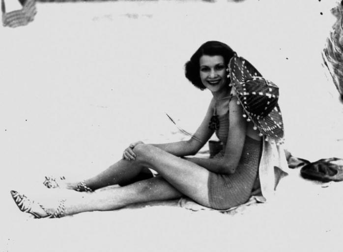 | Keywords: StateLibQld 1 127855 Grace Riordan makes an attractive beach study, 1938.jpg  en Grace Riordan makes an attractive beach study 1938 Miss Riordan wears a swimsuit wide-brimmed sombrero style hat and strappy sandals 1938-12-21 handle 10462/deriv/83193 Copied and digitised from an image appearing in the Sunday truth 25 December 1938 p 24 Contributor s Truth Brisbane Qld PD-Australia StateLibQld-License Beaches of Queensland Swimwear of Australia Headgear of Australia Black and white photographs of females with hats Women wearing sandals Burleigh Heads Queensland 1938 in Australia Black and white photographs Images from Sunday Truth 1930s swimwear |