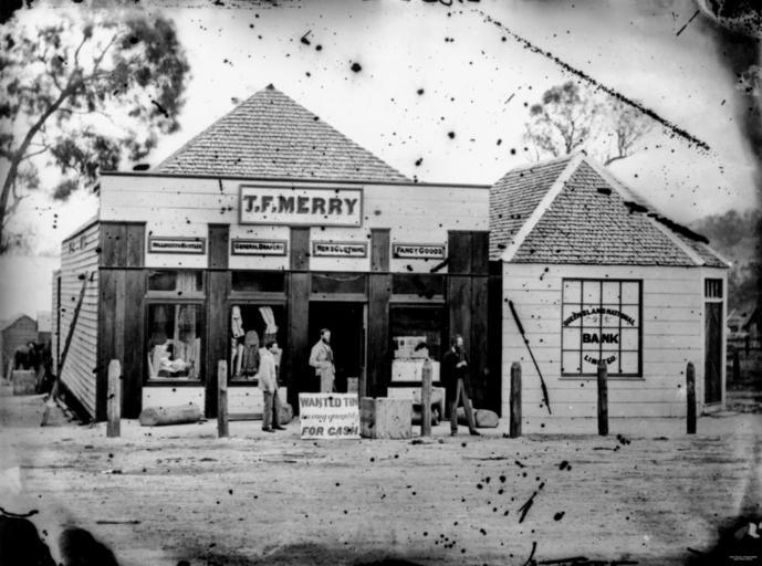 | Keywords: StateLibQld 1 135013 View of Maryland Street, Stanthorpe, 1872.jpg en View of Maryland Street Stanthorpe 1872 The early part of William Boag's career was spent in Sydney where he was in partnership with portrait photographer Joseph Charles Milligan Images made by Boag are in the collection of the Campbelltown and Airds Historical Society Boag arrived in Queensland in November 1871 He travelled around the south-east along the foreshore of Moreton Bay and the township of Cleveland He then moved into the Logan and Albert area where he captured images of local crushing mills and sugar plantations While at Yatala he took on a partner John Henry Mills and by the end of 1872 both men were in Stanthorpe where they remained for several months producing views of the booming tin-mining settlement In July 1873 after stopping off in Warwick Boag and Mills extended their operations to Mackay where they remained until October 1875 During this time Boag made trips to St Lawrence and Cooktown however his movements after this are difficult to trace It is known that by mid 1876 he was at Copperfield and Clermont and in February 1878 he inserted a notice in the Peak Downs Telegram announcing that he was leaving for the west Then information ceases abruptly It is possible that Boag never reached his destination since his death certificate records that he died in 1878 at an unknown location Pictured are Thomas Frederick Merry's general store and the premises of the Queensland National Bank opened on 6 June 1872 This was the first country branch to be established in the Colony Manager H J Gray Esq in frockcoat stands to the left of the premises The branch closed on 30 September 1891 1872 handle 10462/deriv/9312 Item is held by John Oxley Library State Library of Queensland Boag William 1838 -1878 PD-Australia StateLibQld-License Queensland National Bank Men's clothing Buildings in Stanthorpe Queensland 1872 in Queensland 19th-century photographs of Queensland Black and white photographs |