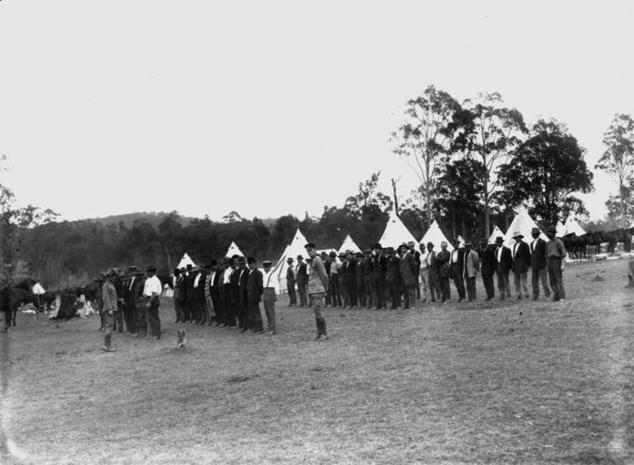 | Keywords: StateLibQld 1 137907 New volunteers on parade at Enoggera Army Camp, ca 1914.jpg en New volunteers on parade at Enoggera Army Camp ca 1914 Poul C Poulsen founder of the Poulsen Studios in Brisbane was born in Denmark in 1857 and arrived in Sydney in 1876 In 1882 he moved to Queensland and was later joined by his sisters and brothers from Denmark He opened his own studio at no 7 Queen Street in 1885 and later opened branches run by his brothers in other Queensland towns Poulsen vigorously advertised constant improvements and modernisation in his studio and in the service he provided His sons and grandson followed in his footsteps circa 1914 handle 10462/deriv/10463 Item is held by John Oxley Library State Library of Queensland Poulsen Poul C 1857-1925 PD-Australia StateLibQld-License Military buildings in Australia Horses of Queensland Tents in Australia Military officers of Australia Enoggera Queensland 1914 in Queensland Black and white photographs |