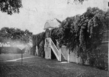 | Keywords: StateLibQld 1 153603 Blackall residence, possibly Banksia, 1933.jpg en Blackall residence possibly Banksia 1933 Trailing flowering shrubs give shade to the porch and veranda of a home in Hawthorne Street Blackall 1933 handle 10462/deriv/117977 Copied and digitised from an image appearing in The Queenslander 7 September 1933 Contributor s Queenslander Brisbane Qld 1866-1939 PD-Australia StateLibQld-License Gardens in Queensland Houses in Blackall Black and white photographs Images from The Queenslander 1933 in Queensland |