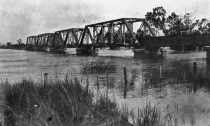 Keywords: StateLibQld 1 15522 Railway bridge in Emerald during a flood, 1918.jpg en Railway bridge in Emerald during a flood 1918 1918 handle 10462/deriv/146665 Item is held by John Oxley Library State Library of Queensland PD-Australia StateLibQld-License Railway bridges in Queensland Floods in Queensland Nogoa River Emerald Queensland 1918 in Queensland Black and white photographs of Australia in the 1910s 1918 floods