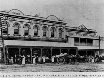 Keywords: StateLibQld 1 15626 Heaslop's wholesale and retail store, Stanley Street, South Brisbane, 1900.jpg en Heaslop's wholesale and retail store Stanley Street South Brisbane 1900 <br /> Workers are posing outside the general store of J T Heaslop Several horsedrawn carts are being loaded in the street in front of the buildings 1900 handle 10462/deriv/453 Item is held by John Oxley Library State Library of Queensland Contributor s Queenslander Brisbane Qld 1866-1939 PD-Australia StateLibQld-License Horse-drawn carts in Australia Black and white photographs Stanley Street Brisbane Images from The Queenslander 1900 in Queensland Shops in South Brisbane |