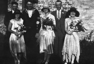| Keywords: StateLibQld 1 157290 Wedding party during wartime, 1930 - 1940.jpg en Wedding party during wartime 1930 - 1940 1940 handle 10462/deriv/4613 Item is held by John Oxley Library State Library of Queensland PD-Australia StateLibQld-License Brides of Australia Wedding dresses in Australia Bridesmaids of Australia Flower bouquets in Australia Military uniforms of Australia Men's clothing of Australia Women's clothing of Australia Headgear of Australia People with hats Wedding ceremonies in Australia Wedding parties Black and white photographs |