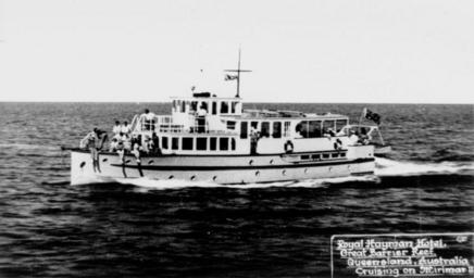 | Keywords: StateLibQld 1 160941 Miramar II (ship).jpg en Miramar II ship Caption on photo Royal Hayman Hotel Great Barrier Reef Queensland Australia Cruising on Miramar II handle 10462/deriv/8369 Item is held by John Oxley Library State Library of Queensland PD-Australia StateLibQld-License Ships of Australia Tourism in Australia Miramar II ship Ships in Queensland Black and white photographs | ||||