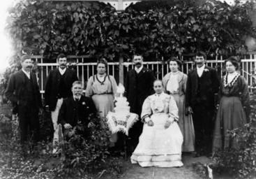 Keywords: StateLibQld 1 162991 Henry and Eliza Head celebrating their Golden Wedding Anniverary with family, 1907.jpg supplied with photograph 1907 handle 10462/deriv/110225 Item is held by John Oxley Library State Library of Queensland PD-Australia StateLibQld-License Portraits of Queensland Families of Australia Dresses in Australia Men's clothing of Australia Women's clothing of Australia Moustaches Hair fashion in Australia 1907 in Australia Black and white photographs |