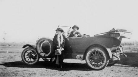 | Keywords: StateLibQld 1 163975 Jessie Campbell in the car at Kalbar, June 1920.jpg  en Jessie Campbell in the car at Kalbar June 1920 Jessie Campbell is sitting in a touring car with the hood down The car's spare tyre is fixed to the running board and a folded luggage rack is at the rear 1920-06-18 handle 10462/deriv/111370 Item is held by John Oxley Library State Library of Queensland PD-Australia StateLibQld-License Automobiles of Australia People with hats Kalbar Queensland 1920 in Australia Portraits of Queensland Women's clothing of Australia Headgear of Australia Black and white photographic portraits |