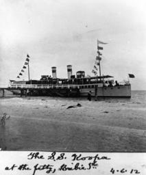 | Keywords: StateLibQld 1 16414 Passenger ferry S.S. Koopa at the jetty at Bribie Island, Queensland, 1912.jpg en Passenger ferry S S Koopa at the jetty at Bribie Island Queensland 1912 The passenger ferry Koopa operated before World War II in Moreton Bay Queensland running pleasure cruises In 1942 Koopa was commissioned to the Royal Australian Navy where she was used as a depot ship for combined operations training at Toorbul Queensland and later went to the Milne Bay area of New Guinea Koopa was returned to her owners in January 1947 1912-06-04 handle 10462/deriv/146589 Item is held by John Oxley Library State Library of Queensland PD-Australia StateLibQld-License Ferries in Queensland Wharves and quays in Australia Bunting in Australia Koopa ship 1911 Black and white photographs Ships in Queensland Bribie Island 1912 in Australia |