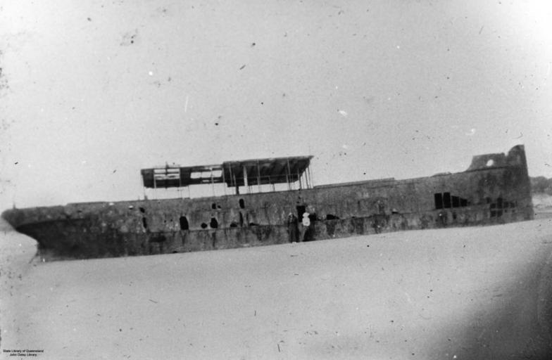 | Keywords: StateLibQld 1 167739 Dicky (ship).jpg en Wreck of the ship Dicky on the beach at Caloundra Queensland in 1914 1914-06-01 handle 10462/deriv/104719 Item is held by John Oxley Library State Library of Queensland PD-Australia StateLibQld-License DEFAULTSORT Dicky 1914 in Queensland Black and white photographs of Queensland Black and white photographs of ships Dicky ship 1883 1914 Ships in Queensland | ||||