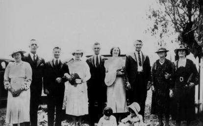 Keywords: StateLibQld 1 212508 Patrick and Delia Moloney's wedding group, ca. 1940.jpg en Patrick and Delia Moloney's wedding group ca 1940 Moloney family group with the bride and groom in the centre Delia is holding her hat in her hand circa 1940 handle 10462/deriv/134270 Item is held by John Oxley Library State Library of Queensland PD-Australia StateLibQld-License Portraits of Queensland Families of Australia Wedding ceremonies in Australia Women's clothing of Australia Men's clothing of Australia Headgear of Australia People with hats Black and white photographs |