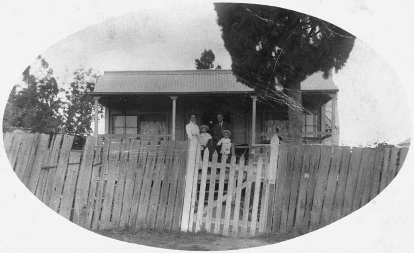 Keywords: StateLibQld 1 213780 Owen family photographed on their front porch, Tivoli, ca. 1914.jpg en Owen family photographed on their front porch Tivoli ca 1914 Mr R B Owen his wife and two children are standing on the verandah of their cottage A timber paling fence with a white picket gate border the property Mr Owen was one of the workmen on Mt Crosby filter-beds Mr Owen and his wife arrived in Queensland in 1911 They had one daughter born in 1913 and two sons Richard born in 1907 and Sydney born in 1911 are possibly the two children in the photograph circa 1914 handle 10462/deriv/138683 Item is held by John Oxley Library State Library of Queensland PD-Australia StateLibQld-License Black and white photographs Cottages in Queensland Families of Queensland Fences in Queensland Houses in Ipswich |