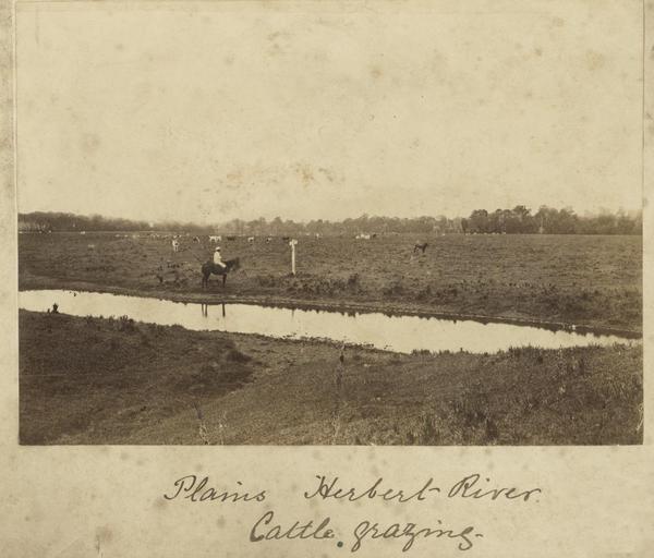 Keywords: StateLibQld 1 235306 Cattle grazing on the plains in the Herbert River area, near Ingham, ca. 1881.jpg en Cattle grazing on the plains in the Herbert River area near Ingham ca 1881 circa 1881 handle 10462/deriv/39014 Item is held by John Oxley Library State Library of Queensland PD-Australia StateLibQld-License Views of Queensland Herbert River Cattle in Australia Horses of Queensland Ingham Queensland Black and white photographs |