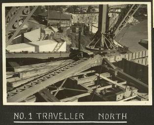Keywords: StateLibQld 1 242029 North anchor arm in place on the city side of the Story Bridge, ca. 1938.jpg en North anchor arm in place on the city side of the Story Bridge ca 1938 Story Bridge in Brisbane was built to span the Brisbane River from the city to Kangaroo Point It was named in honour of Mr J D Story the Public Service Commissioner Design of the bridge began in early January 1934 The Bridge Board elected Dr J J C Bradfield as the consulting engineer The construction of the cantilever bridge began in 1935 and was completed and opened to traffic in July 1940 The length of bridge including the approaches is 1375 m More than 95 of the steel was manufactured in Australia and the bridge was constructed by Evans Deakin-Hornibrook Construction Co Pty Ltd between 1938 1939 handle 10462/deriv/127627 Item is held by John Oxley Library State Library of Queensland PD-Australia StateLibQld-License Views of Queensland Story Bridge construction Cranes in Australia Girders in Australia Brisbane River 1938 in Brisbane Black and white photographs |