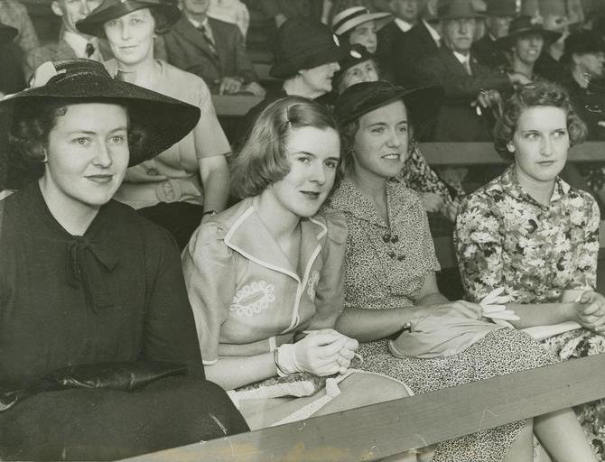 | Keywords: StateLibQld 1 251388 Young ladies pictured at the cricket, Brisbane.jpg supplied with photograph handle 10462/deriv/121246 Item is held by John Oxley Library State Library of Queensland Jackman George; Contributor s Queensland Newspapers Pty Ltd PD-Australia StateLibQld-License People with hats Sports in Brisbane Women's clothing of Australia Headgear of Australia Hair fashion in Australia Spectators in Australia Black and white photographs | ||||
