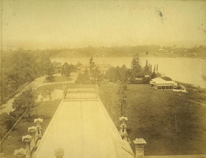 | Keywords: StateLibQld 1 254669 Looking towards Government House and the flooded Brisbane River from the roof of Parliament House, Brisbane 1893.jpg  en Looking towards Government House and the flooded Brisbane River from the roof of Parliament House Brisbane 1893 February 4 1893 saw the highest floods on record in Brisbane and elsewhere; 6ft water in Edward Street at the Courier Buildings hundreds of houses washed down river trees uprooted and shipping torn from moorings The shores of Moreton Bay were strewn with wreckage On the 5th the Indooroopilly Bridge was washed away; pm the 6th the northern end of Victoria Bridge disappeared; flood waters rose at Brisbane to 23 feet 9 inches above mean spring tide and 10 feet over the previous highest flood mark 1890 Similar disaster befell other towns where bridges and houses disappeared by the hundreds; at Gympie many of the mines were blown up; much loss of life reported particularly from Ipswich Rainfall at Crohamhurst head of Brisbane water was 105 inches between 1st January and 11th February A second flood almost reaching the level of the first was experienced on the 19th a lesser one having prevailed on the 13th South Brisbane was without fresh water for some days and the whole of Brisbane practically in darkness at night A very large relief fund 70 000 pounds was established subscriptions in money and in kind arriving from England as well as from the other colonies Information taken from Queensland State Archives database 2004 - 2006 retrieved 11 January 2006 from <http //www archives qld gov au/exhibitions/virtualexhibition/images/1893introduction asp> 1893 handle 10462/deriv/40241 Item is held by John Oxley Library State Library of Queensland PD-Australia StateLibQld-License Brisbane River Old Government House Brisbane Gardens in Brisbane Queensland 1893 Brisbane flood Black and white photographs Parliament House Brisbane Floods in South Brisbane Landscapes of Queensland |
