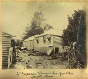 Keywords: StateLibQld 1 256184 MacPherson residence at Montague Road after the floods, South Brisbane, 1893.jpg en MacPherson residence at Montague Road after the floods South Brisbane 1893 February 4 1893 saw the highest floods on record in Brisbane and elsewhere; 6ft water in Edward Street at the Courier Buildings hundreds of houses washed down river trees uprooted and shipping torn from moorings The Indooroopilly Bridge was washed away and the northern end of Victoria Bridge disappeared Floodwaters rose at Brisbane to 23 feet 9 inches above mean spring tide and 10 feet over the previous highest flood mark 1890 A second flood almost reaching the level of the first was experienced on the 19th a lesser one having prevailed on the 13th South Brisbane was without fresh water for some days and the whole of Brisbane was practically in darkness at night A very large relief fund 70 000 pounds was established subscriptions in money and in kind arriving from England as well as from the other colonies Information taken from Queensland State Archives database 2004 - 2006 retrieved 11 January 2006 from <http //www archives qld gov au/exhibitions/virtualexhibition/images/1893introduction asp> 1893-02-01 handle 10462/deriv/122549 Item is held by John Oxley Library State Library of Queensland PD-Australia StateLibQld-License Houses in South Brisbane Queensland Wagons in Australia 1893 Brisbane flood Black and white photographs Floods in South Brisbane |