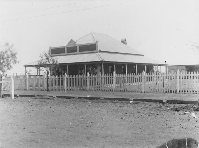 Keywords: StateLibQld 1 395641 Shire Hall, Thargomindah, ca. 1893.jpg en Shire Hall Thargomindah ca 1893 This image shows the Shire Hall building in Thargomindah ca 1893 The brick building has a white painted picket fence in front The foreground shows the unpaved road No vehicles or people are shown circa 1893 handle 10462/deriv/193553 Item is held by John Oxley Library State Library of Queensland PD-Australia StateLibQld-License Town halls in Queensland Thargomindah Queensland 1893 in Queensland Black and white photographs |