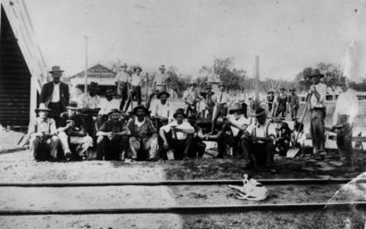 Keywords: StateLibQld 1 44743 Construction of the Chinchilla War Memorial Park, ca. 1922.jpg supplied with photograph Labourers resting in the shade stop shovelling to pose for a photograph In the background are the premises of T G Selman circa 1922 handle 10462/deriv/144838 Item is held by John Oxley Library State Library of Queensland PD-Australia StateLibQld-License Manual workers of Australia Chinchilla Queensland Black and white photographs War memorials in Queensland |