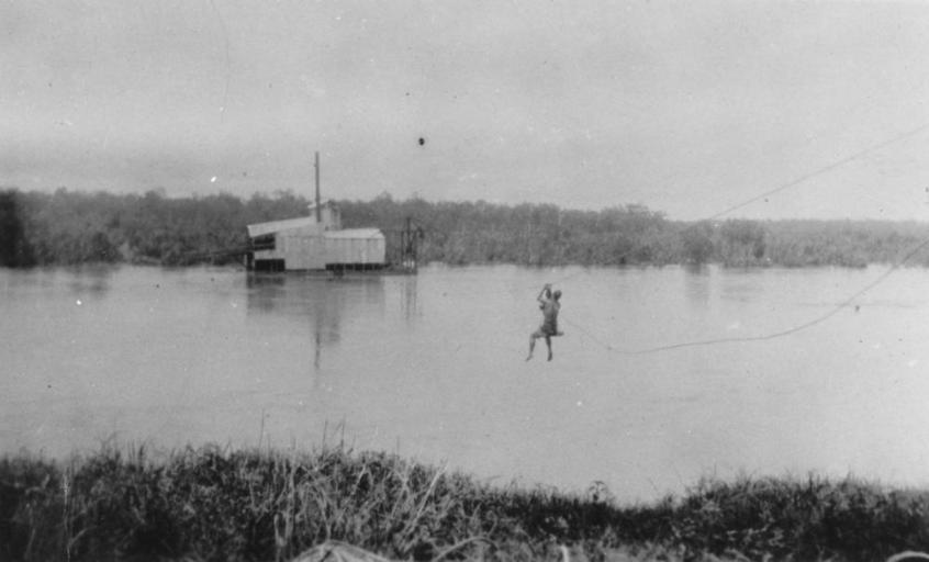 Keywords: StateLibQld 1 70879 Gold mining dredge on the Palmer River in Queensland.jpg en Gold mining dredge on the Palmer River in Queensland Flying fox in operation for times of high water and flood handle 10462/deriv/86197 Item is held by John Oxley Library State Library of Queensland PD-Australia StateLibQld-License Rivers of Queensland Gold dredges in Australia Black and white photographs Palmer River goldfields Images from the State Library of Queensland