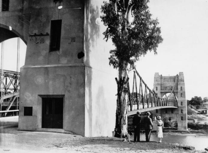 Keywords: StateLibQld 1 74674 Indooroopilly Toll Bridge, Brisbane, 1936.jpg en Indooroopilly Toll Bridge Brisbane 1936 This suspension bridge spans the Brisbane River connecting Indooroopilly to Chelmer Walter Taylor was the driving force behind the contruction of the bridge being promotor constructor and engineer of the company which was formed Construction began early in 1932 and the bridge was officially opened on February 14 1936 Information taken from The Indooroopilly toll bridge a souvenir of the official opening day 1936 Image is taken from directly in front of one of the concrete pylons looking across the river to the far side Several people with a dog survey the new bridge 1936 handle 10462/deriv/87760 Item is held by John Oxley Library State Library of Queensland PD-Australia StateLibQld-License Suspension bridges in Australia Dogs of Australia 1936 in Brisbane Black and white photographs of Australia in the 1930s Walter Taylor Bridge Bridges in Australia photographed in 1936 Black and white photographs of bridges |