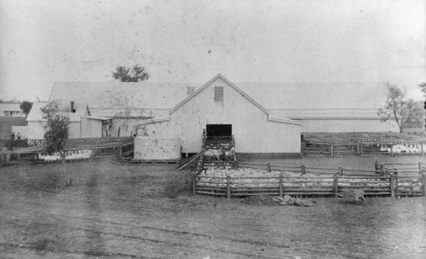 | Keywords: StateLibQld 1 85004 Woolshed at Nive Downs Station, 1892.jpg en Woolshed at Nive Downs Station 1892 1892 handle 10462/deriv/62180 Item is held by John Oxley Library State Library of Queensland PD-Australia StateLibQld-License Sheep and cattle stations in Queensland Sheep in Queensland Wool production in Australia Fences in Australia Farm buildings in Australia 1892 in Queensland Black and white photographs Nive Downs Station | ||||