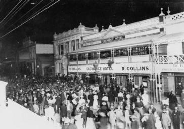 Keywords: StateLibQld 1 91548 Night of the referendum on Federation of Australia, Charters Towers, 1900.jpg en Night of the referendum on Federation of Australia Charters Towers 1900 Outside the Exchange Hotel in Mosman Street Charters Towers 1900 handle 10462/deriv/66828 Item is held by John Oxley Library State Library of Queensland Contributor s Marion Photos PD-Australia StateLibQld-License Crowds in Australia Hotels and pubs in Charters Towers Streets in Charters Towers 1900 in Australia Black and white photographs Verandas on Queensland hotels Federation of Australia Crowds in Queensland