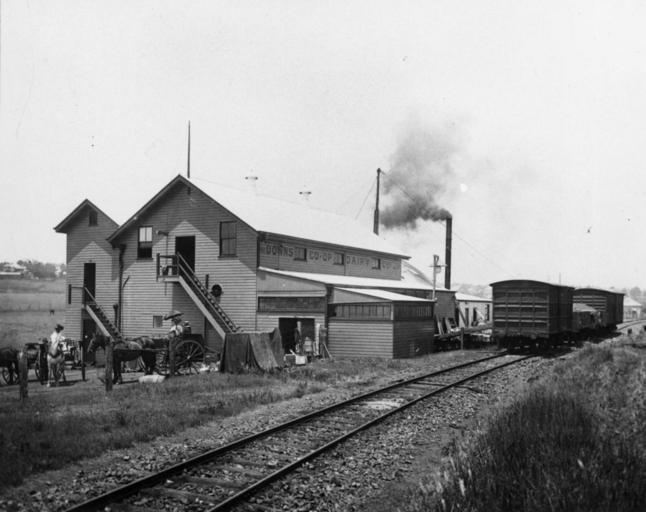 | Keywords: StateLibQld 1 93780 Downs Co-Operative Butter Factory, Toowoomba, ca. 1908.jpg en Downs Co-Operative Butter Factory Toowoomba ca 1908 The butter factory is situated next to railway lines and there are several goods carriages waiting on the line Some horsedrawn vehicles are waiting outside the factory tended by their owners Two long flights of steps lead into seperate factory entrances Smoke is billowing from a chimney of the factory circa 1908 handle 10462/deriv/72358 Item is held by John Oxley Library State Library of Queensland PD-Australia StateLibQld-License Butter factories in Queensland Railway lines in Queensland Buildings in Toowoomba 1908 in Australia Black and white photographs |