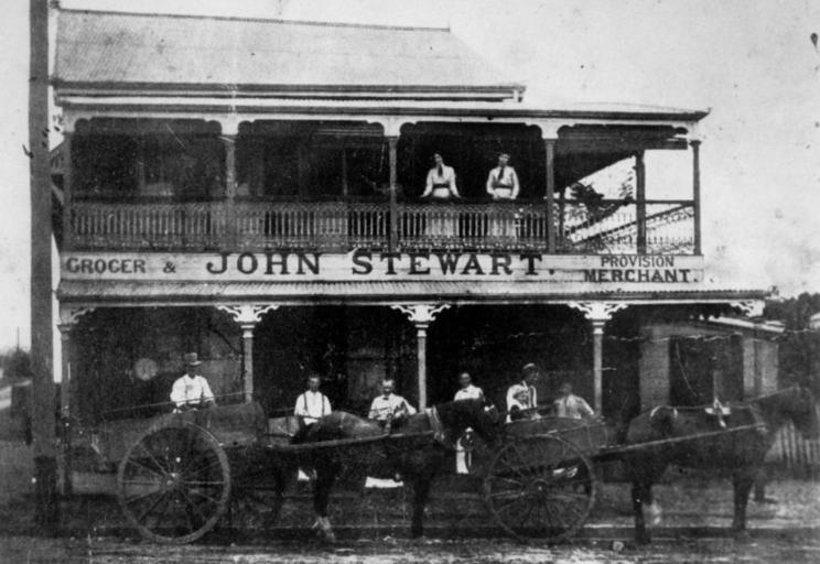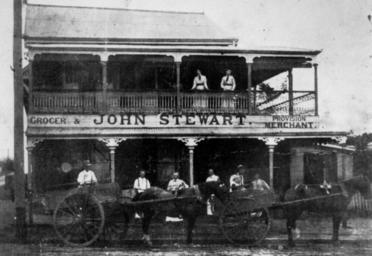 Keywords: StateLibQld 1 95796 John Stewart's grocery store at Annerley around 1913.jpg en John Stewart's grocery store at Annerley around 1913 Staff and customers outside John Stewart's grocery and provisions store on the corner of Ipswich Road and Clive Street around 1913 1913 handle 10462/deriv/73533 Item is held by John Oxley Library State Library of Queensland PD-Australia StateLibQld-License Shops in Queensland Grocery stores in Australia Verandas on Queensland shops Horse-drawn carts in Australia Annerley Queensland Black and white photographs |