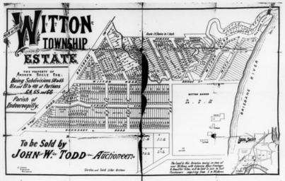 Keywords: StateLibQld 2 130499 Witton Township real estate map, Indooroopilly, Brisbane, ca. 1880s.jpg en Witton Township real estate map Indooroopilly Brisbane ca 1880s The property of Andrew Bogle Esq To be sold by John w Todd Auctioneer The land in this direction having an area of over 70 acres with extensive river frontages and beautiful sites will be sold in lots to suit purchasers requiring from 5 to 30 acres information on map Map includes Ormond Terrace Witton Road Spring Street Boundary Road Bridge Street Maud Street Market Street Rennies Road and shows the location of Witton Manor between 1880 1890 handle 10462/deriv/79707 Item is held by John Oxley Library State Library of Queensland PD-Australia StateLibQld-License Black and white photographs Indooroopilly Queensland Brisbane in the 1880s Land auctions |