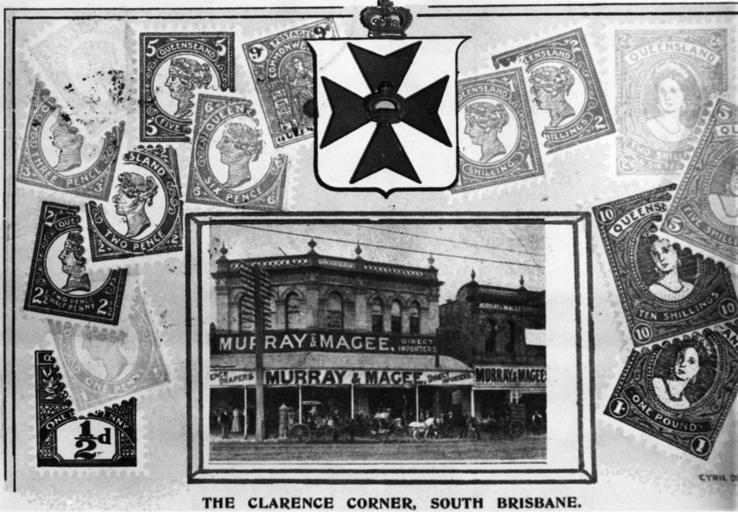 Keywords: StateLibQld 2 164455 Image of Clarence Corner, surrounded by Queensland stamps, Woolloongabba, 1907.jpg en Image of Clarence Corner surrounded by Queensland stamps Woolloongabba 1907 The store of Murray and Magee on Clarence Corner bounded by Stanley Street and Annerley Road The image is surrounded by a selection of Queensland stamps and the Queensland State Emblem is in the centre above the image 1907 handle 10462/deriv/111342 Item is held by John Oxley Library State Library of Queensland PD-Australia StateLibQld-License Commerce buildings in Brisbane Black and white photographs Architecture of Australia Woolloongabba Queensland 1907 in Australia Emblems Annerley Road Clarence Corner Woolloongabba |