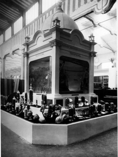| Keywords: StateLibQld 2 201575 Queensland display at the British Empire Exhibition in London, 1924.jpg en Queensland display at the British Empire Exhibition in London 1924 Tropical Trophy designed by H W Mobsby for the Queensland Court British Empire Exhibition Wembley 1924 This exhibit was on a 16ft octagonal base with glass cases on each face depicting pearl divers sugar-cane cultivation and tobacco growing A variety of tropical products were also displayed including rice fibres flax spices herbs arrowroot rubber cocoa cotton coconuts cinnamon vanilla and camphor Marine products exhibited included 5cwt of beche-de-mer which was specially prepared at Thursday Island and Mr James Clark of Brisbane exhibited one ton of pearl shell and £5 000 worth of pearls Information taken from British Empire Exhibition Papers Queensland State Archives 104/A/6324 1924 handle 10462/deriv/96827 Copied and digitised from an image appearing in the Queensland agricultural journal November 1924 p 365 Mobsby H W 1861-1933; Contributor s Queensland agricultural journal PD-Australia StateLibQld-License Agricultural exhibitions in Australia British Empire Exhibition 1924 Black and white photographs Displays Arrowroot Sugar cane in Queensland |