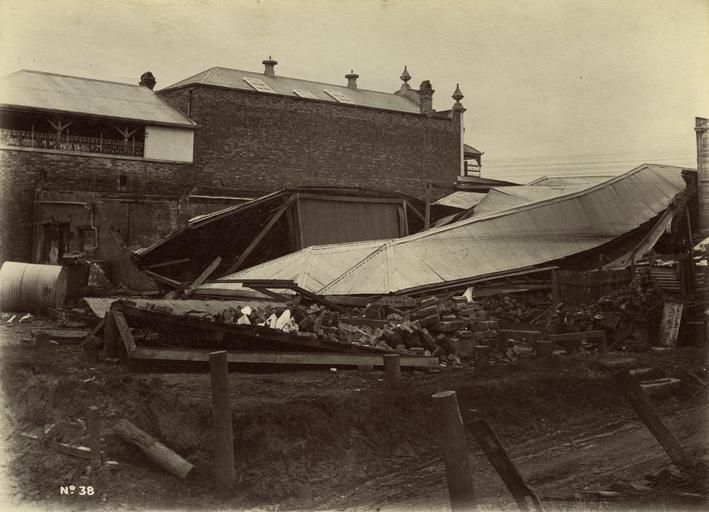 Keywords: StateLibQld 2 241538 Kerlins general store in Stanley Street, South Brisbane after the floods of 1893.jpg en Kerlins general store in Stanley Street South Brisbane after the floods of 1893 Store is reduced to piles of bricks and twisted corrugated iron Caption under photograph reads ' Kerlins Store nearly all the good were washed away ' 1893 handle 10462/deriv/125753 Item is held by John Oxley Library State Library of Queensland PD-Australia StateLibQld-License Black and white photographs Flood damage in Queensland 1893 Brisbane flood Corrugated iron Shops Brick constructions |