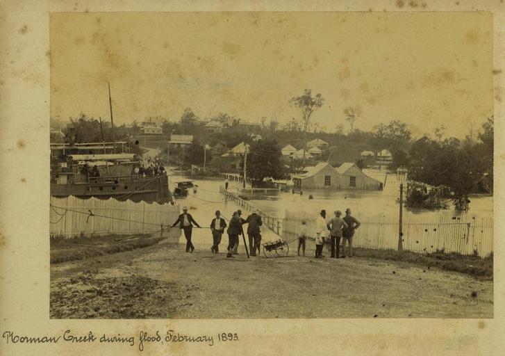 Keywords: StateLibQld 2 243614 Norman Creek during flood, February 1893.jpg en Norman Creek during flood February 1893 1893 floods in Brisbane has inundated the land close to the river A rope has been strung across the road to assist pedestrians and small boats to cros the river 1893 handle 10462/deriv/118857 Item is held by John Oxley Library State Library of Queensland PD-Australia StateLibQld-License Black and white photographs Rivers of Queensland Boats in Australia 1893 in Queensland |