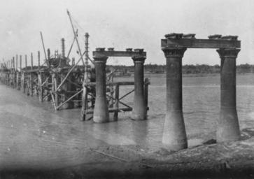 Keywords: StateLibQld 2 393973 Construction of the St. Lawrence Railway bridge, 1920.jpg en Construction of the St Lawrence Railway bridge 1920 Several concrete piles have cross members attached and the wooden scaffolding removed The remainder of the bridge is still enclosed in scaffolding Hoist and pulleys are staioned at intervals along the length of the bridge 1920 handle 10462/deriv/193628 Item is held by John Oxley Library State Library of Queensland PD-Australia StateLibQld-License Bridge construction in Australia Railway bridges in Queensland Black and white photographs Scaffolding in Australia St Lawrence Queensland Creeks in Queensland 1920 in Australia Pulleys Hoists |