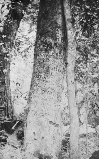 Keywords: StateLibQld 2 394221 Marked tree on Bunya Mountains, ca. 1920.jpg en Marked tree on Bunya Mountains ca 1920 Tree trunk marked with people's names circa 1920 handle 10462/deriv/192653 Item is held by John Oxley Library State Library of Queensland Foster J H ; Contributor s Queenslander Brisbane Qld 1866-1939 PD-Australia StateLibQld-License Bunya Mountains National Park Black and white photographs Trees in Australia Vines |