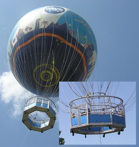 Keywords: Static.balloon.bristol.arp.jpg A static balloon gives the public a view of the city at Castle Park Bristol England <br> This tethered balloon is unreeled to 500 feet carrying 30 passengers for a 30 minute ride <br> Registered as G-CCYF the balloon is an Aerophile 5500 filled with 194 000 cubic feet of helium gas <br> The insert shows a close up of the balloon gondola Photographed by Adrian Pingstone in July 2005 and placed in the public domain Arpingstone Tethered balloons amusement rides G-CCYF aircraft Gondolas aerostats 2005 2005 in England