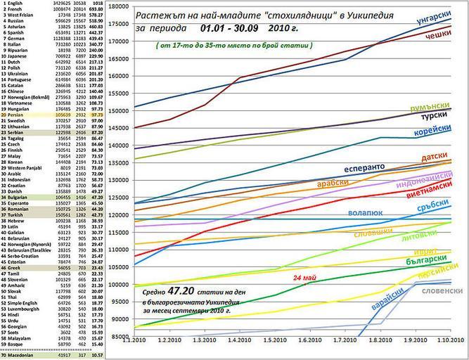 | Keywords: Statistics Wikipedia 30.09.2010.jpg en Statistics_Wikipedia_30 09 2010 bg Класи ане на най-бъ зо аз астващите се азноезични Уикипедии за месец септемв и 2010 г Г афика на на астване на най-младите стохилядници за пе иода януа и - септемв и 2010 г own Stanqo Wikipedia statistics by language |