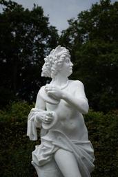 Keywords: statue marble sculpture white woman dance music instruments art fig stone forest vegetation garden