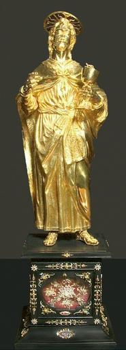 | Keywords: Statue of Saint John the Evangelist.JPG Artwork en Statue of Saint John the Evangelist pl Figura świętego Jana Ewangelisty Gold ebony mother of pearl enamel cm 50 2 16 5 14 Wrocław Cathedral Treasury en King Sigismund III had 12 statues of the apostles of pure gold on an ebony base and a statue of the Saviour the Virgin Mary and that of holy martyr Sigismund all of pure gold The statue of Saint John the Evangelist was donated by Sigismund's son Charles Ferdinand Vasa to the Wrocław Cathedral Object history s 1610 commission Sigismund III of Poland own BurgererSF s 1610 Unknown Augsburg Copyright expired PD-Art Other versions Relics from the Polish Vasa Collection St John Cathedral Church in Wrocław Gold sculptures Sculptures of Saint John the Evangelist in Poland |