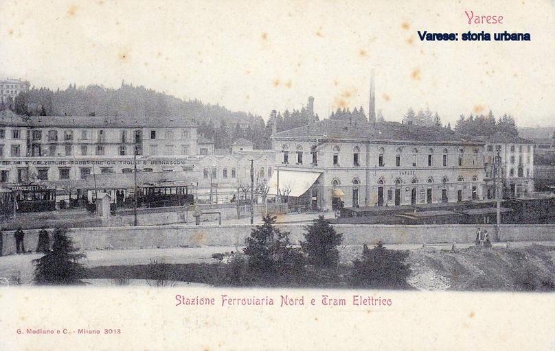 | Keywords: varese tram outdoor La stazione delle Ferrovie Nord Milano (1885) e il capolinea della tranvia per la Prima Cappella (1895) con un convoglio fermo. Sul piazzale è visibile lo stabilimento del Calzaturificio di Varese e dietro la stazione le ciminiere dei Molini Marzoli Massari. La stazione delle Ferrovie Nord Milano (1885) e il capolinea della tranvia per la Prima Cappella (1895) con un convoglio fermo. Sul piazzale è visibile lo stabilimento del Calzaturificio di Varese e dietro la stazione le ciminiere dei Molini Marzoli Massari. |