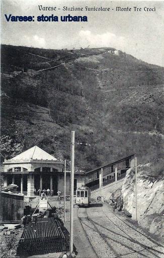 | Keywords: varese funicolare tram outdoor Immagine della stazione della funicolare di Vellone. A destra la linea per Santa Maria del Monte (aperta nel 1909) con una vettura in attesa di partire. Dietro la stazione sono visibili i lavori in corso per la costruzione della linea per il Campo dei Fiori (inaugurata nel 1911) e un deposito di materiale edile del cantiere. La cima del Campo dei Fiori è ancora priva della massiccia sagoma dell'hotel (aperto nel 1912). In primo piano il tram per Varese. Immagine della stazione della funicolare di Vellone. A destra la linea per Santa Maria del Monte (aperta nel 1909) con una vettura in attesa di partire. Dietro la stazione sono visibili i lavori in corso per la costruzione della linea per il Campo dei Fiori (inaugurata nel 1911) e un deposito di materiale edile del cantiere. La cima del Campo dei Fiori è ancora priva della massiccia sagoma dell'hotel (aperto nel 1912). In primo piano il tram per Varese. |