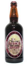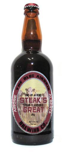Keywords: Steak's Great.jpg en Bottle of Steak's Great bottled between 1993-1995 by the Olde Airdrie Brewing Co own Churchofchristairdrie Beer bottles brown glass